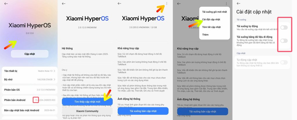 Cài đặt > Giơi thiệu về thiết bị > Cập nhật > ⋮ (gốc trên phải) > Tự động cập nhật